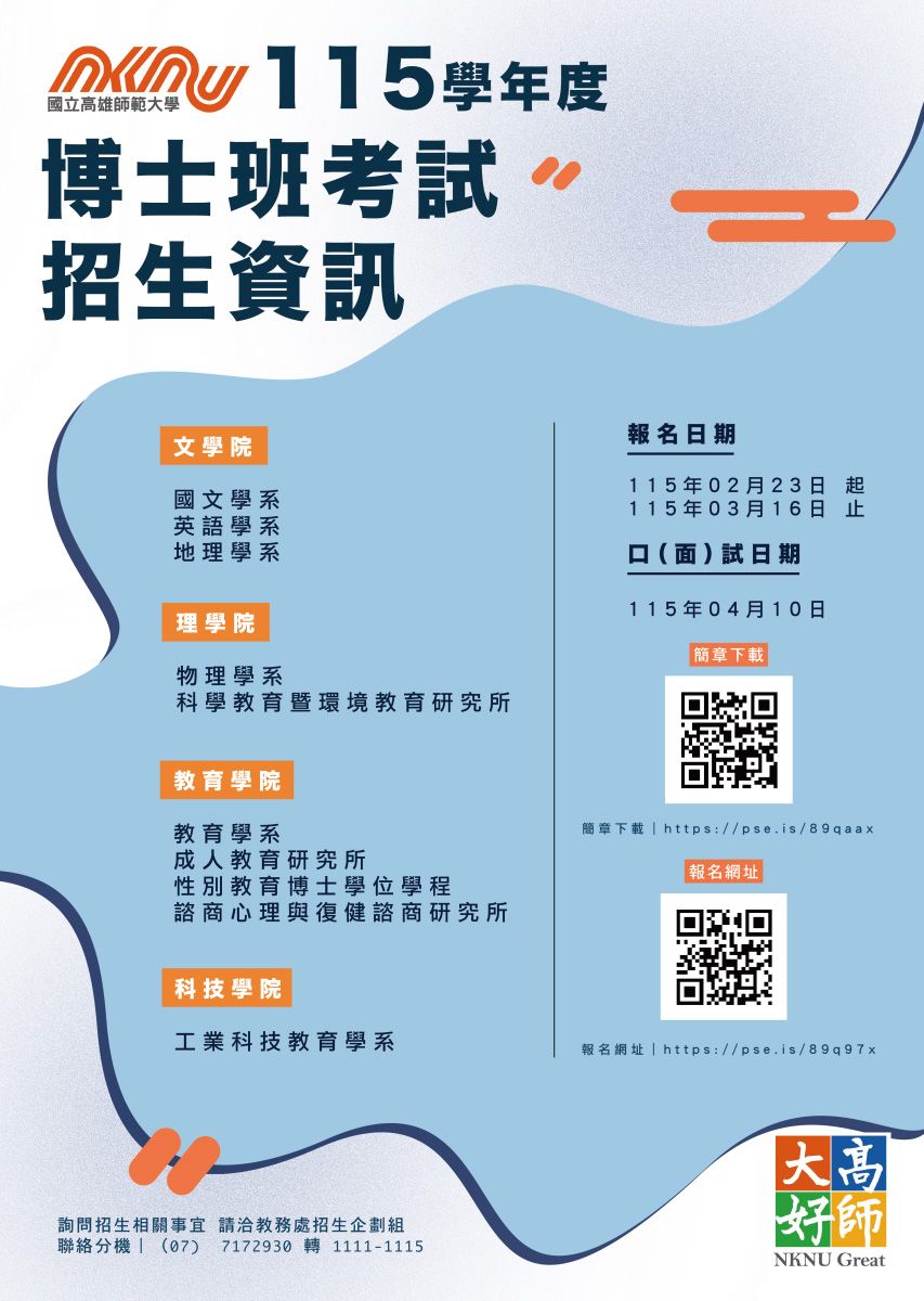 博士班報名日期:115年02月23日~115年03月16日。